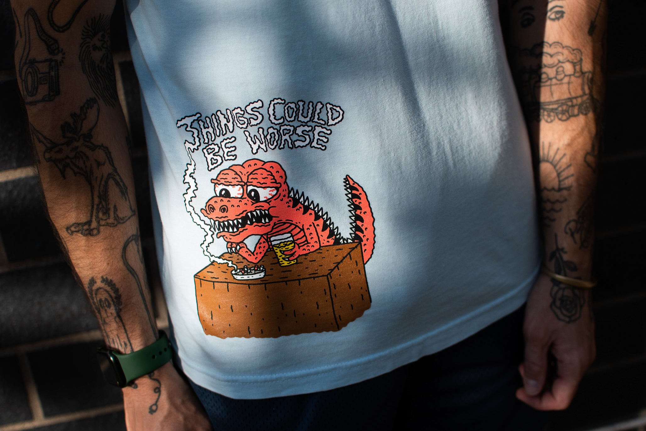 Product Specs: Unisex T, heavyweight 100% ring spun cotton, preshrunk during dying process for nearly no shrinkage at home, decorated with full color screenprint.