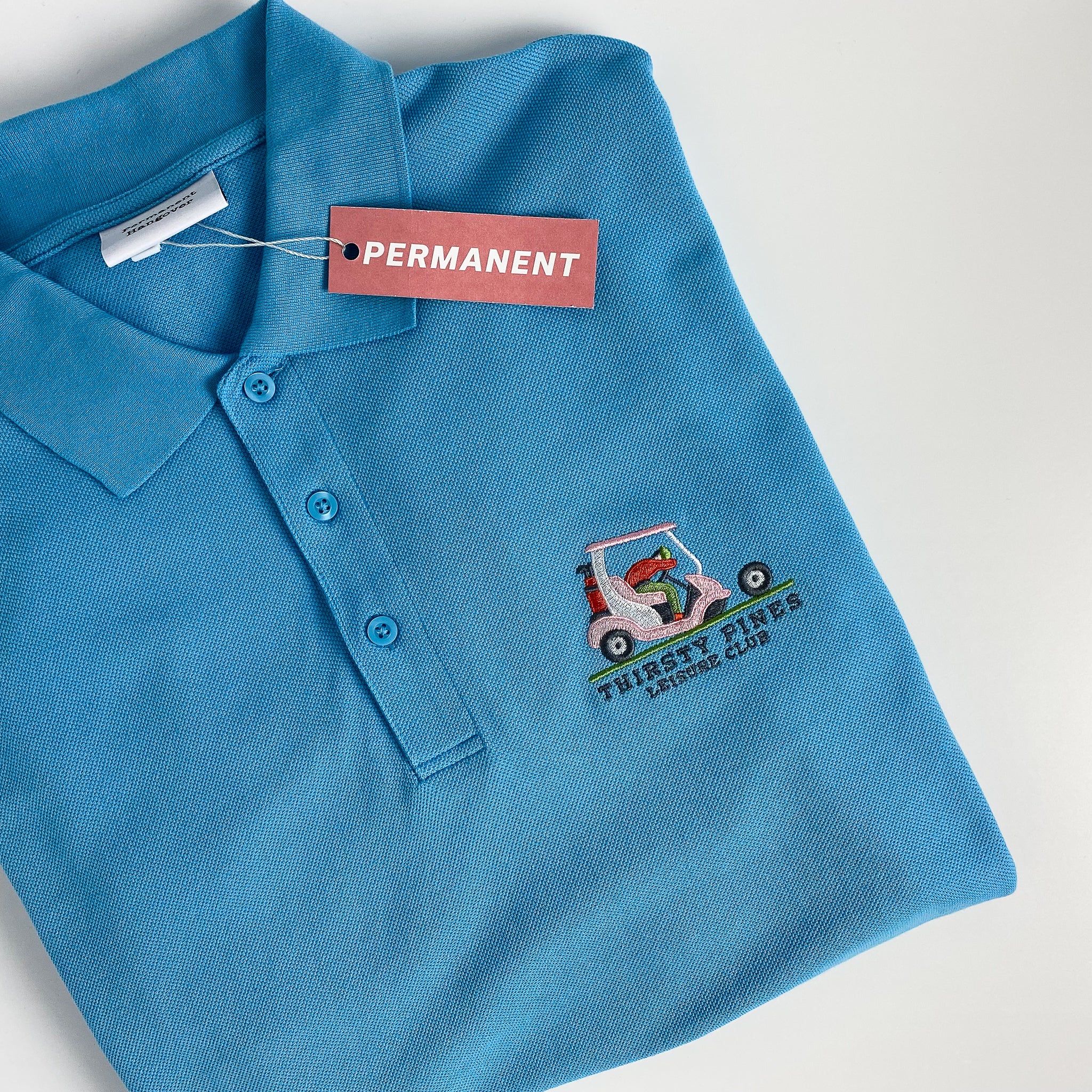 100% ring-spun cotton polo decorated with embroidery on left chest. Rib-knit collar and cuffs, 3-button placket with dyed-to-match buttons.