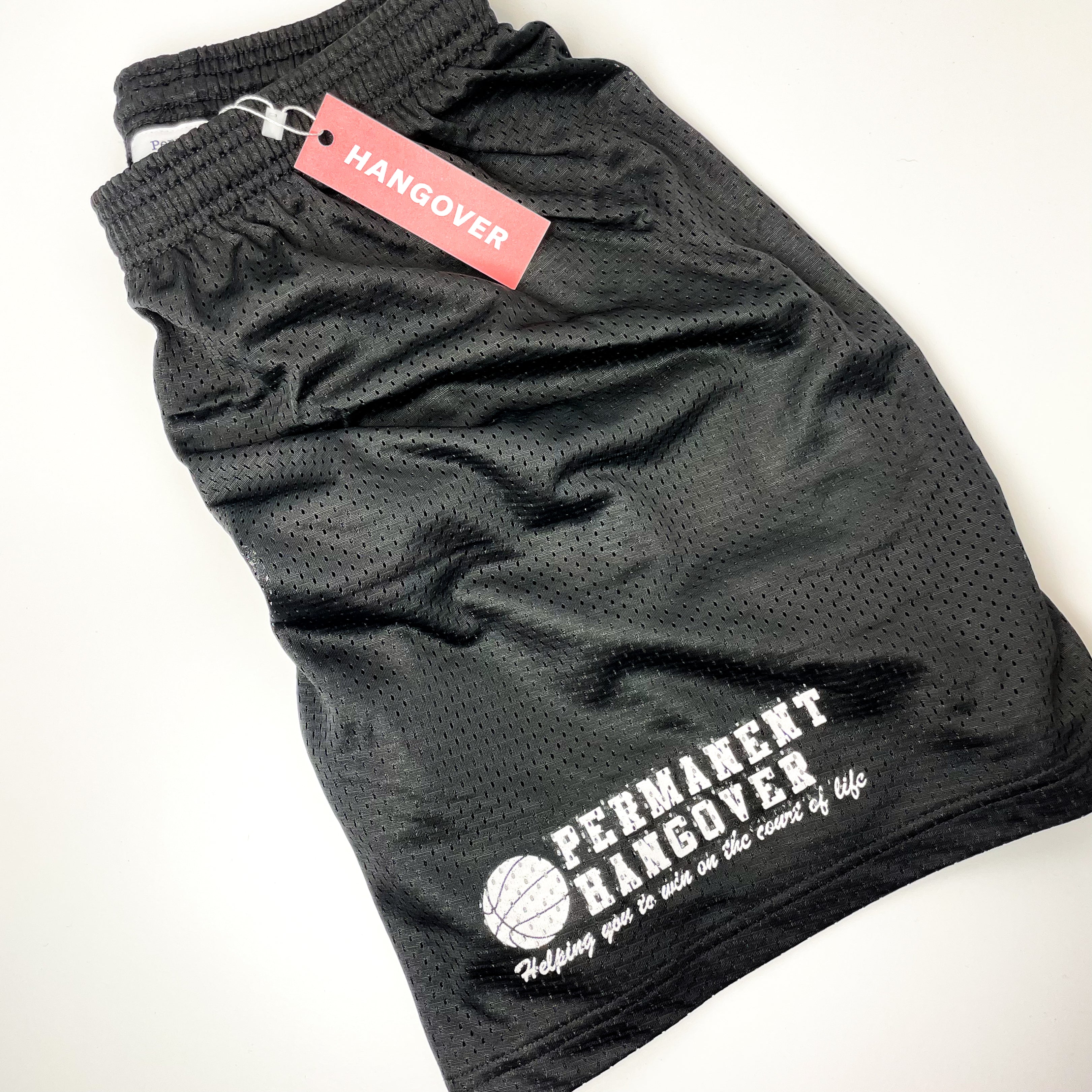 100% polyester mesh, 7" in-seam, no pockets, elastic strap. Sizing chart below.