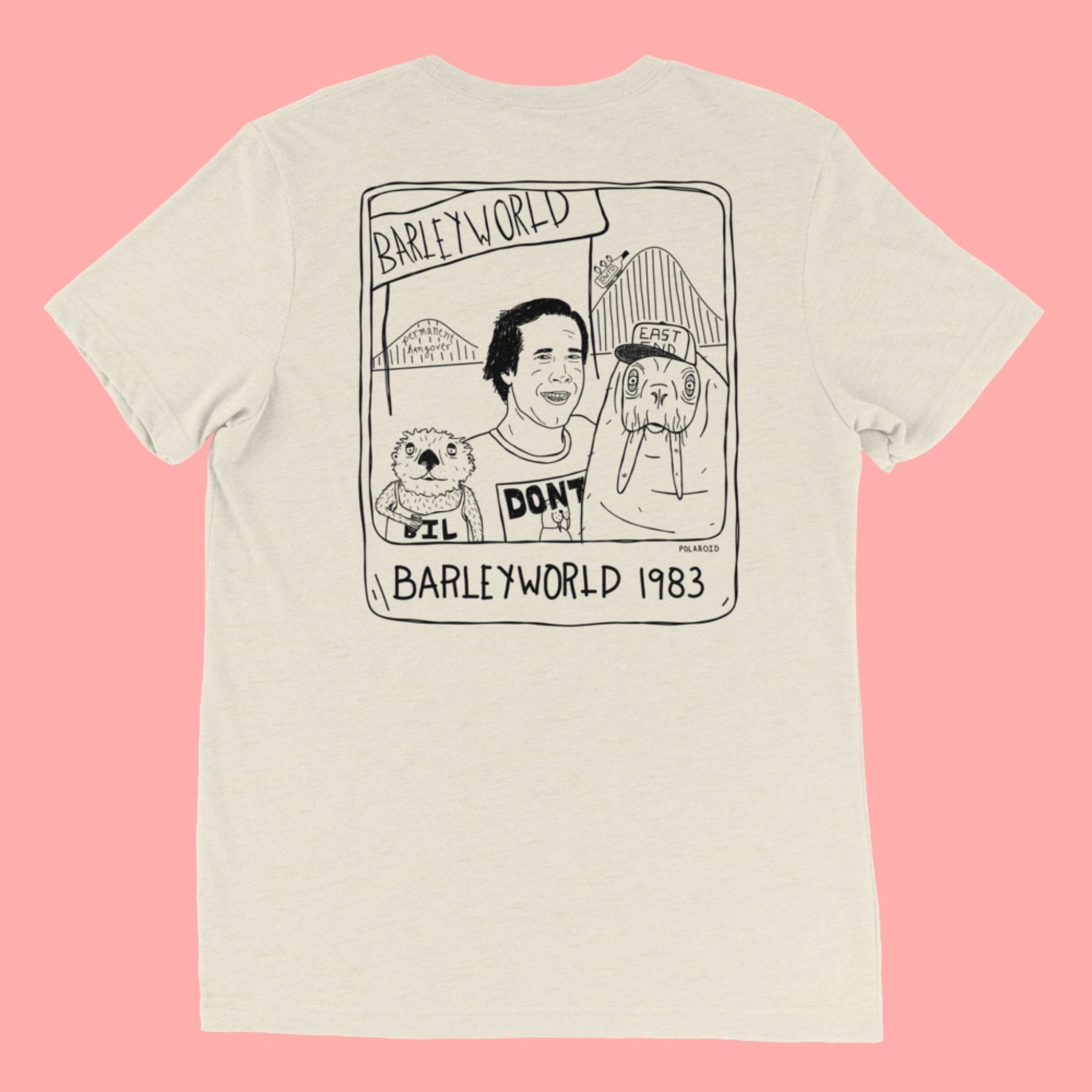black ink print locations: front center + back