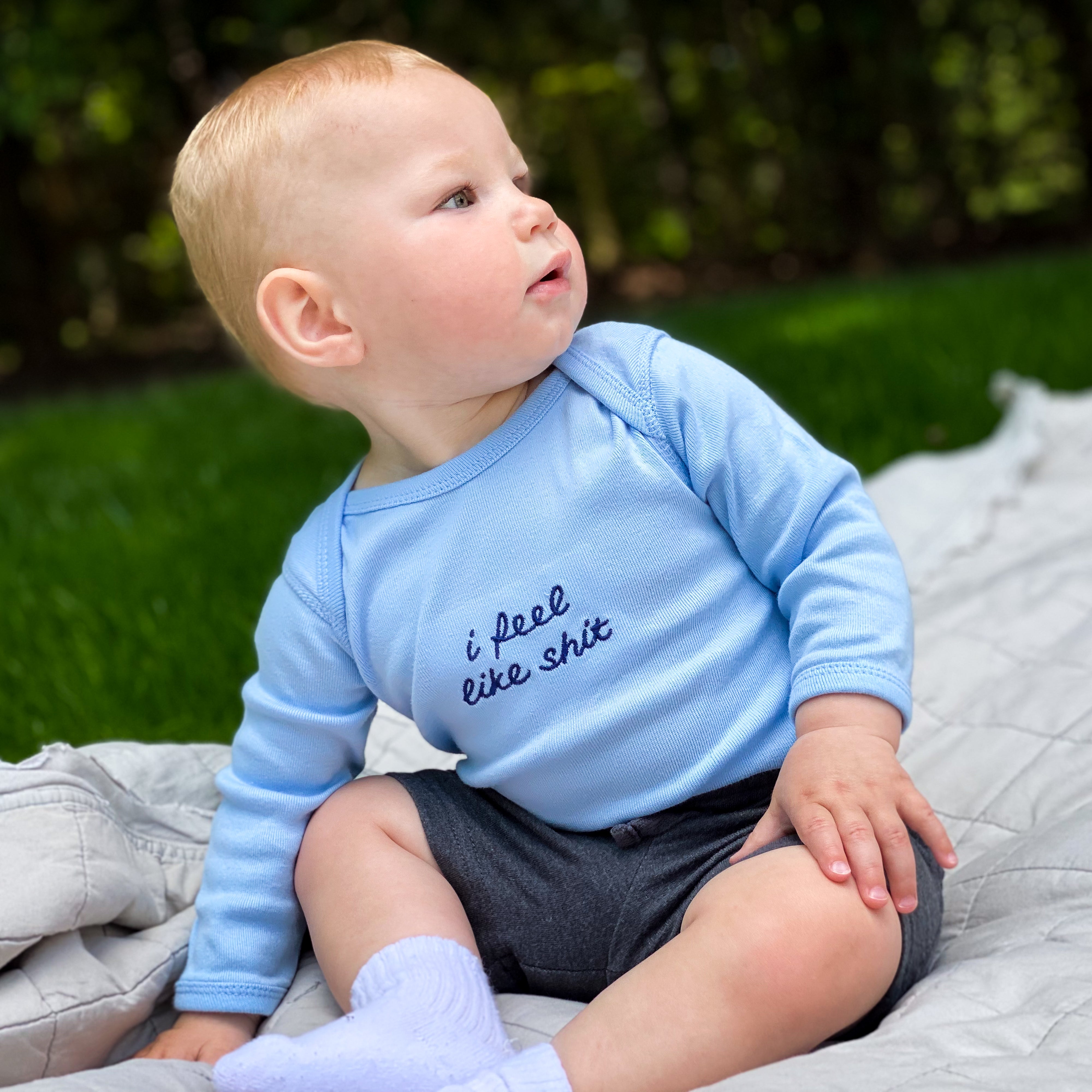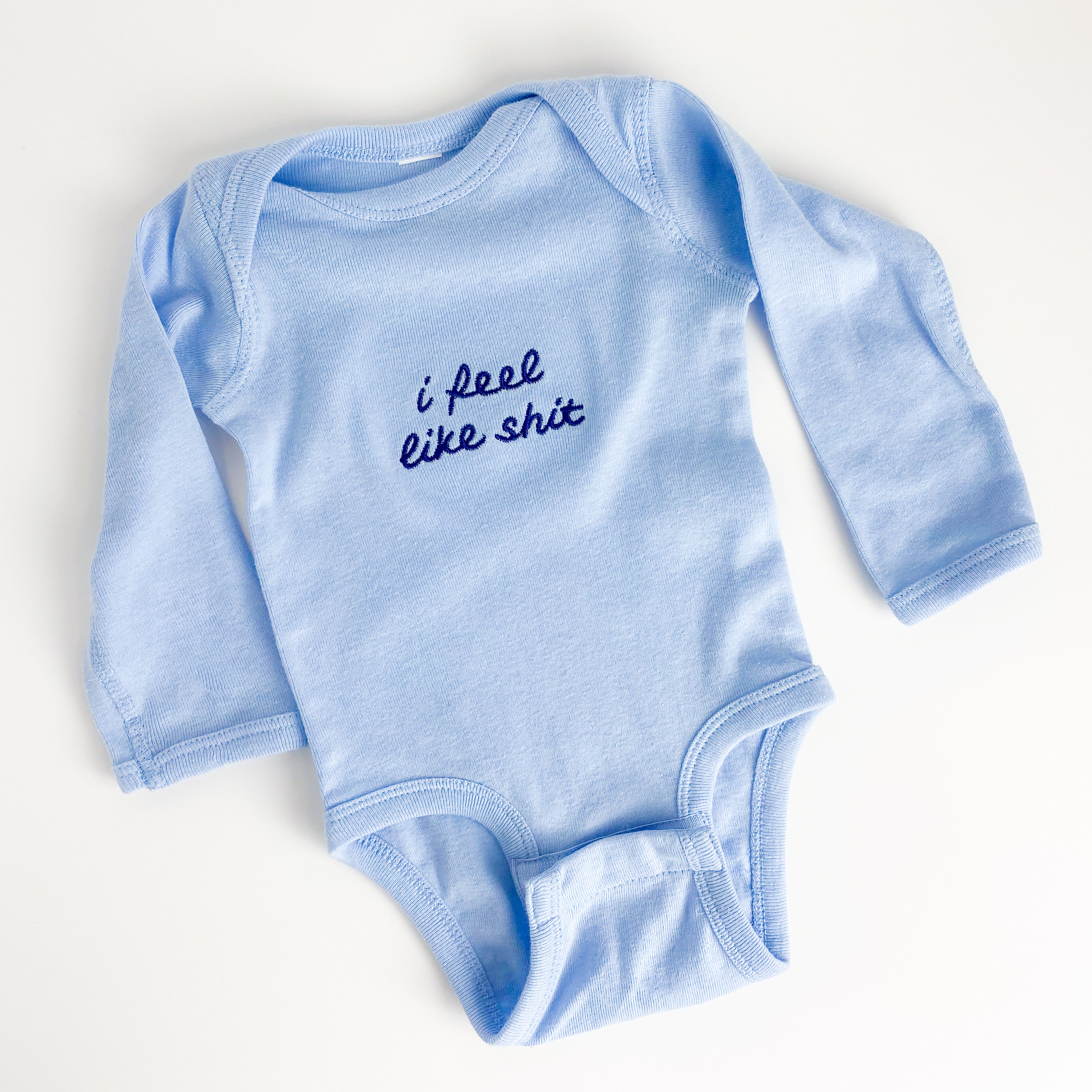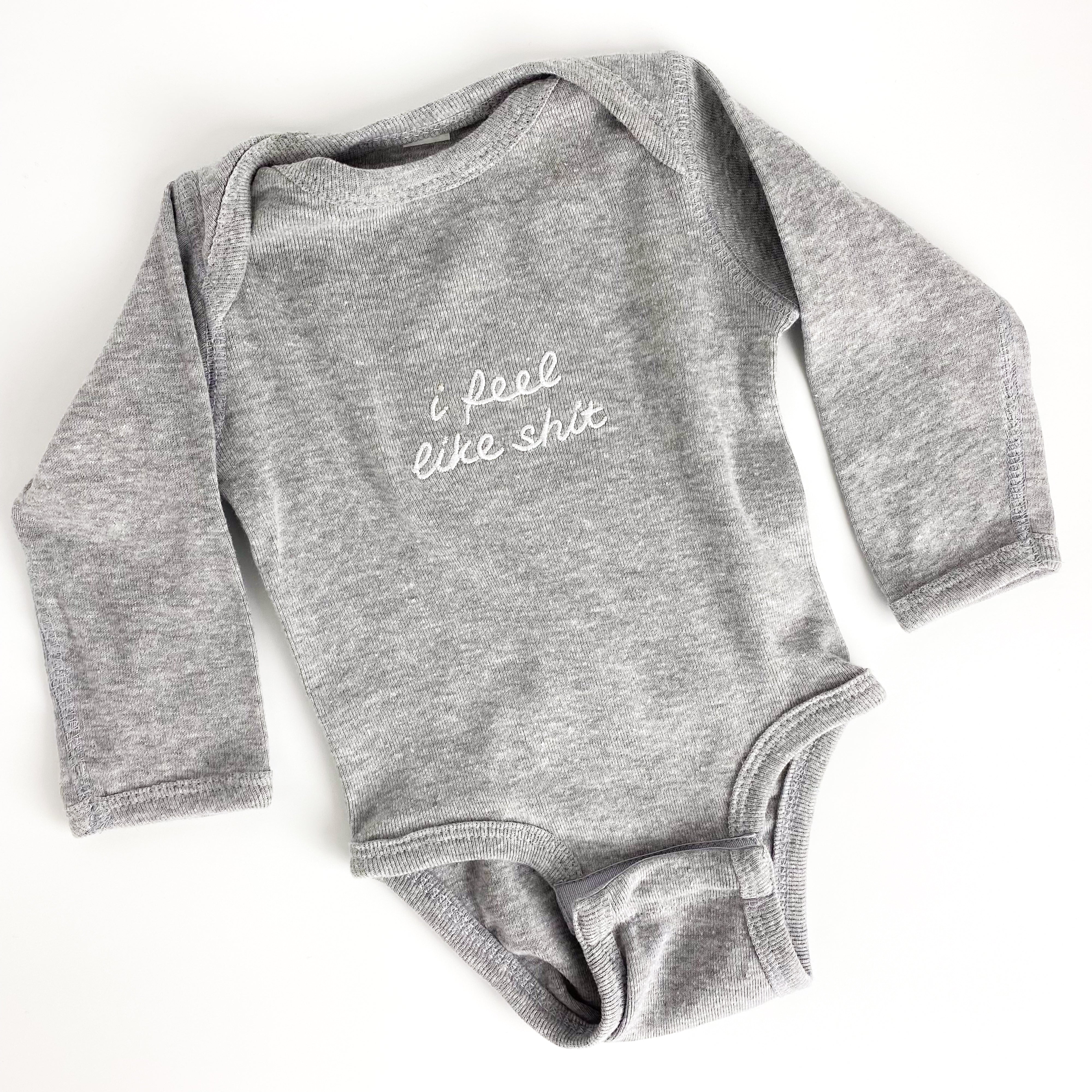 Product Specs: Unisex Baby Onesie, 100% Combed Ringspun Cotton [Heather Grey is 88/12 Cotton/Poly Blend], decorated with embroidered script on center chest.
